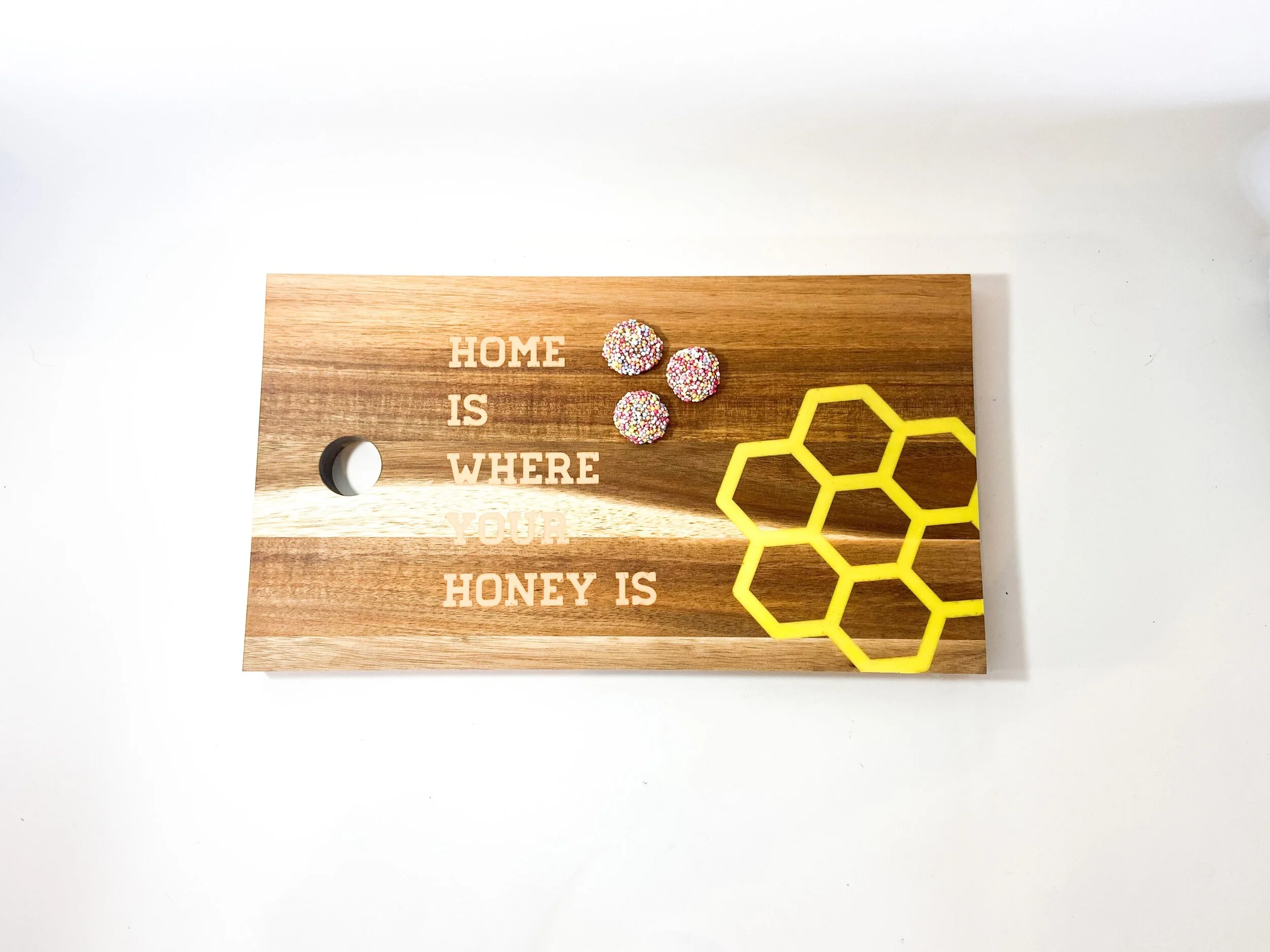 Chopping, slicing, dicing, mincing, scalloping; this multi-functional cutting board can handle it all. Measuring approximately 35cm long by 19cm wide and 2cm thick, this wooden cutting board is the perfect size for preparing a meal, fixing a snack, or slicing bread. This medium sized board is pretty enough to act as a permanent fixture for daily use in any kitchen. This will be the show-piece of your kitchen and add a piece of decor to your home that is unmatched in beauty.